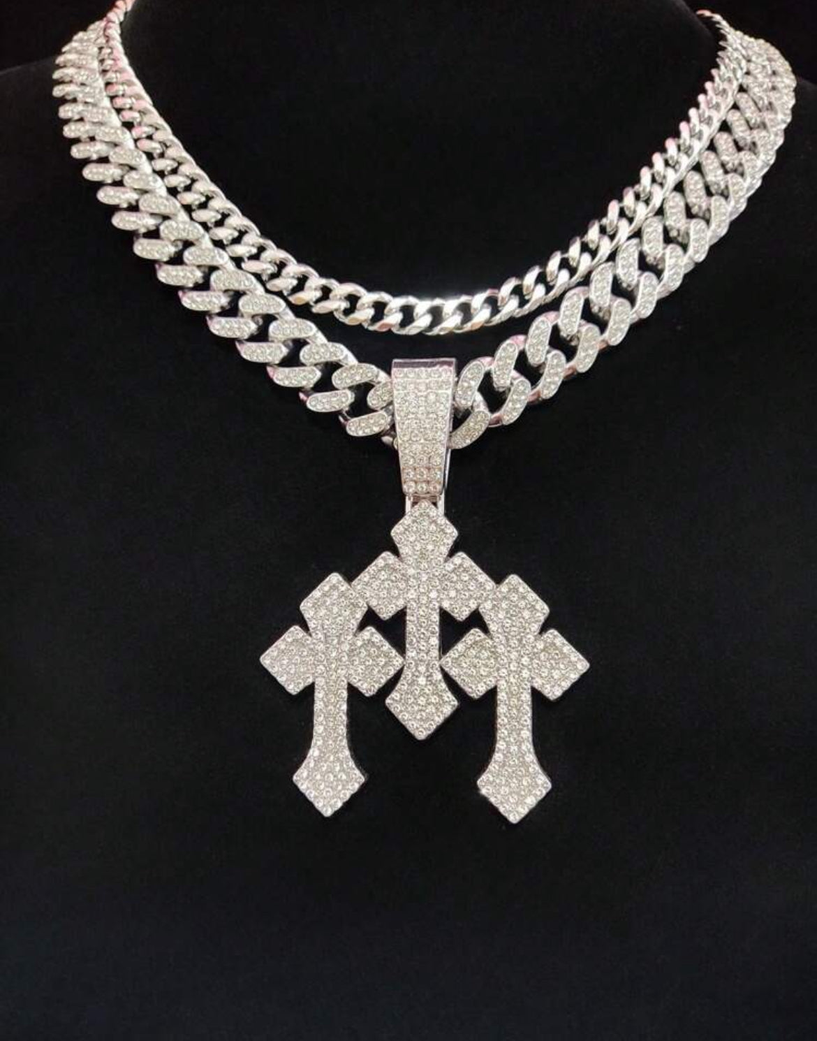 3 cross icy pendant chain for men