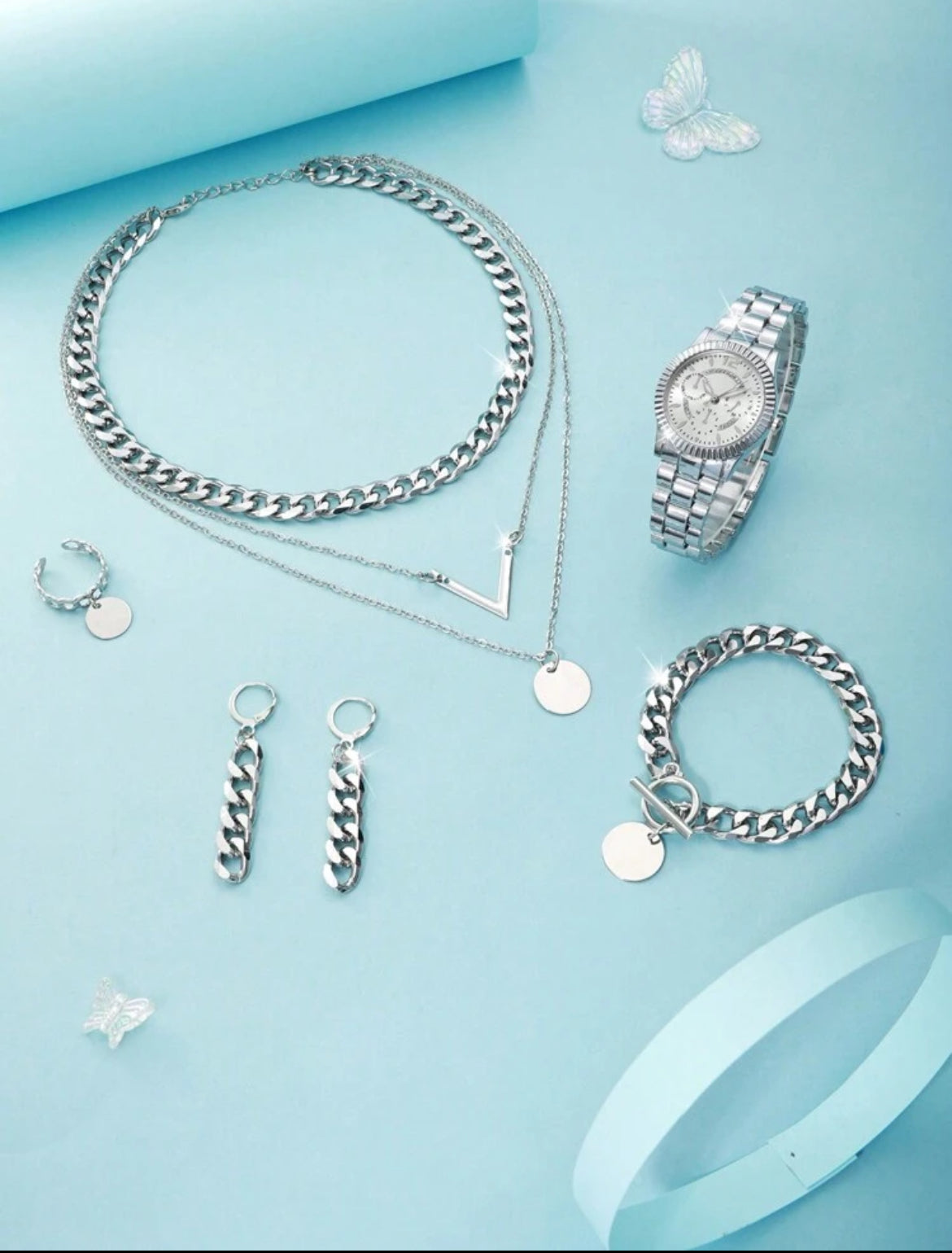 Introducing the 6pc Maeve Stainless Steel Watch Set, a must-have for any watch enthusiast. Crafted with elegant and durable stainless steel, this set offers a touch of sophistication and timeless style to any outfit. Perfect as a gift or for adding variety to your own collection.