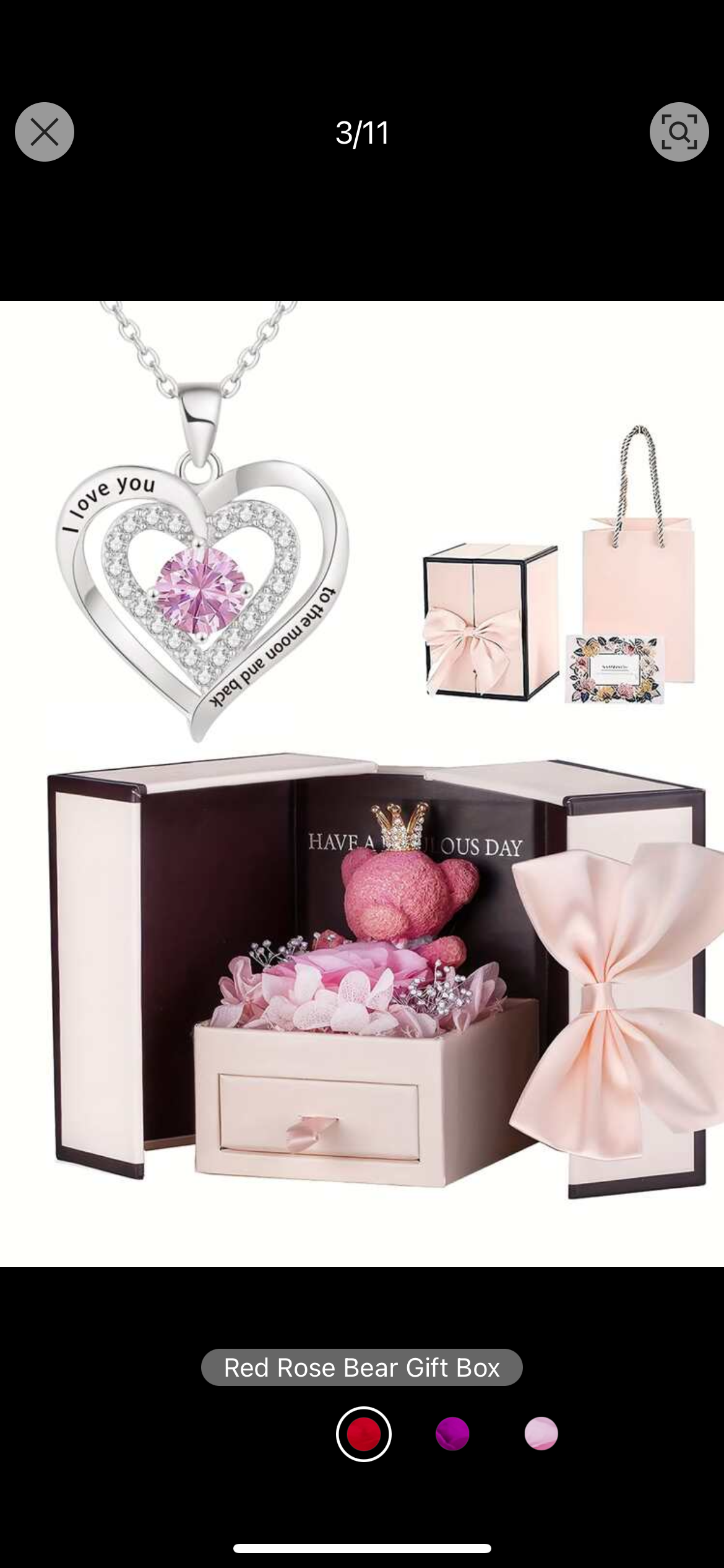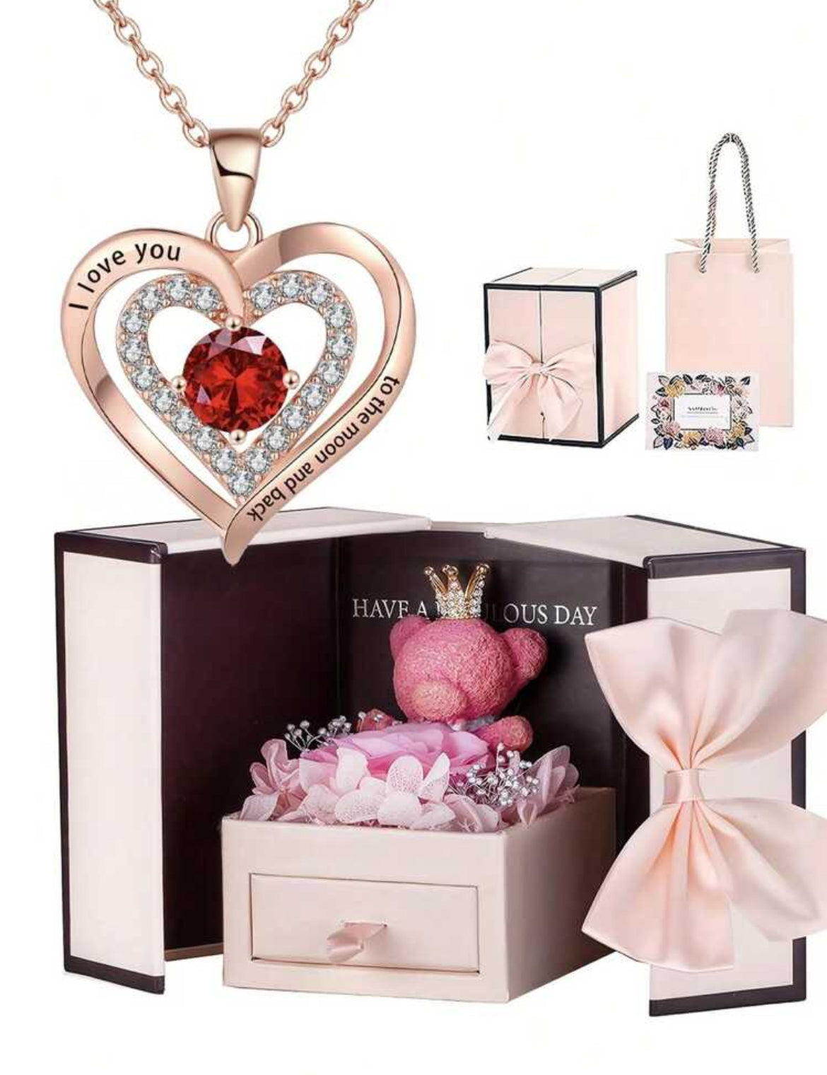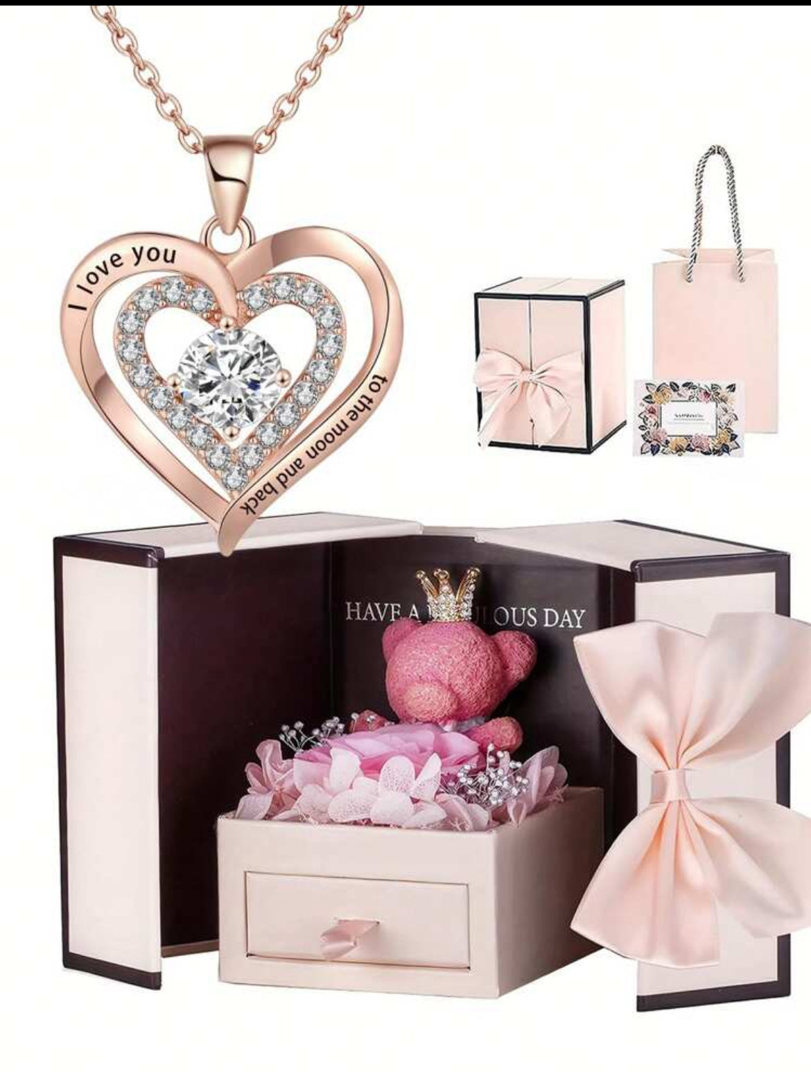 This gift set for her is the perfect way to express your love on Valentine's Day or your anniversary. The necklace and teddy bear showcase a cute and romantic design, making it a thoughtful and heartfelt gesture. Show your love with this beautiful set that will surely make her smile.