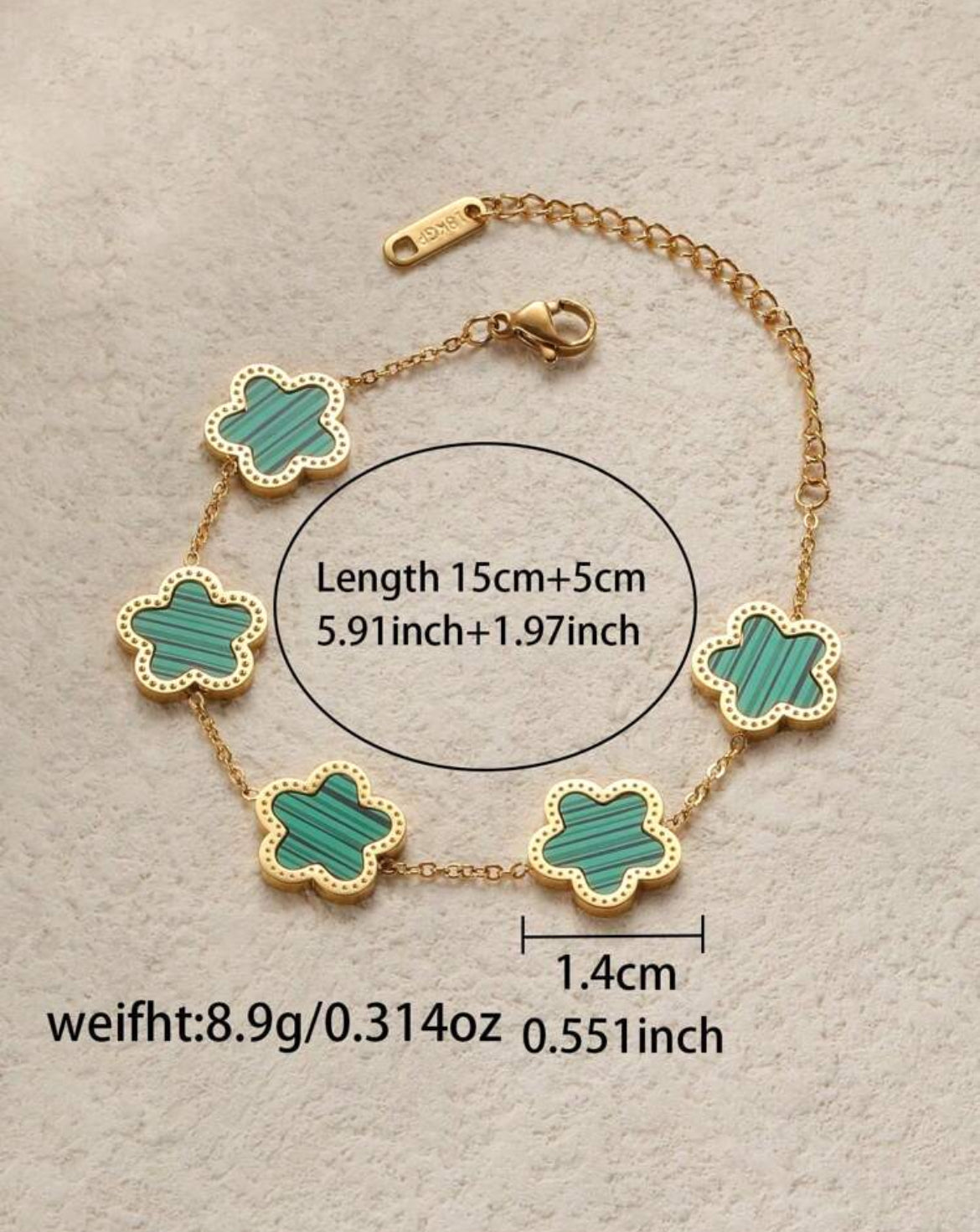 Experience the sleek elegance of our Titanium Steel Clover Bracelets. Made with 5 leafs, these bracelets are a perfect accessory for any occasion. As a durable, long-lasting material, titanium steel ensures your piece will continue to shine and impress for years to come. Elevate your style with our clover bracelets today.